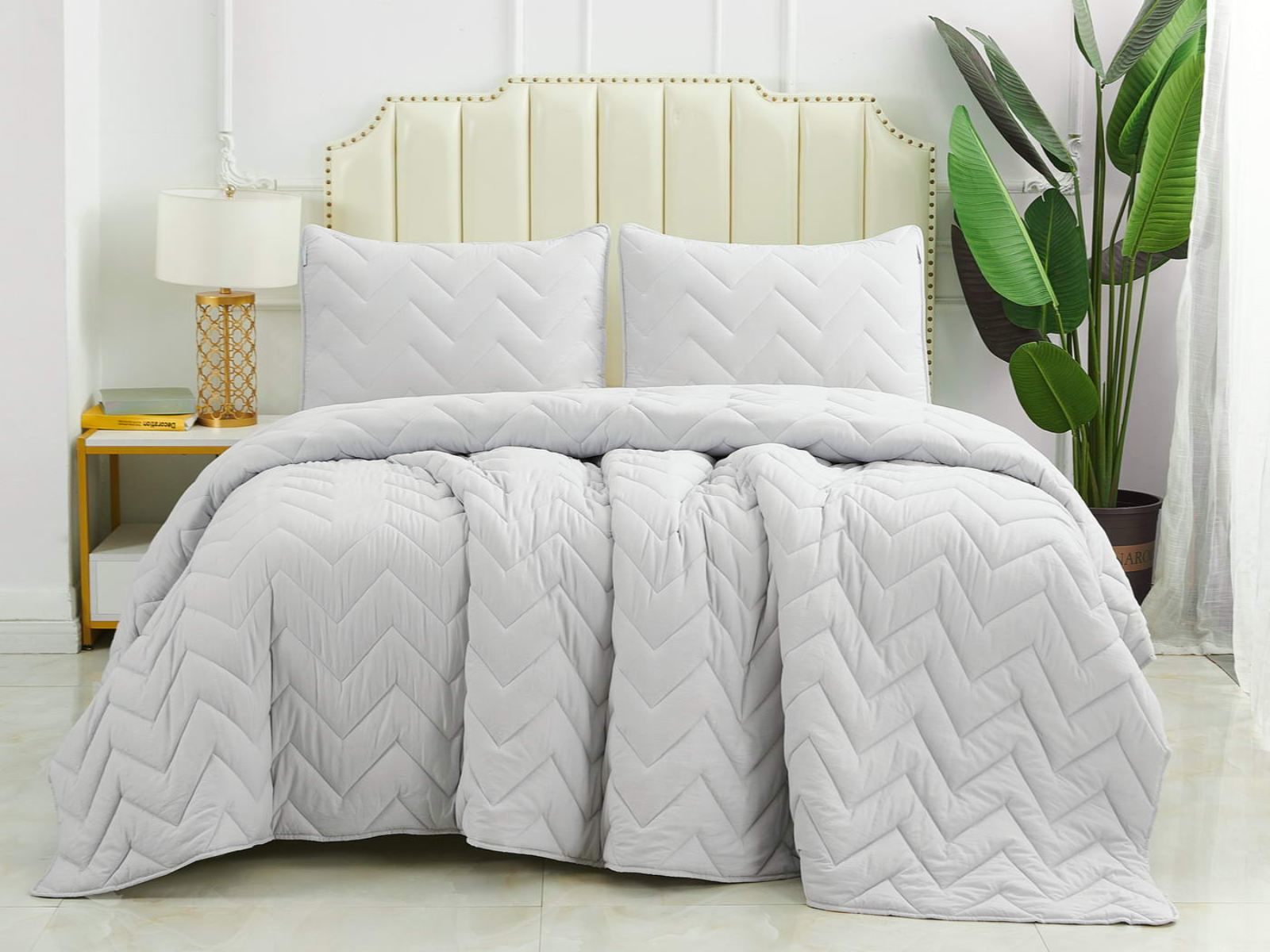 В комплект входят покрывало и одна либо две наволочки (50х70 см) из аналогичного материала в зависимости от размера. Изделия гипоаллергенны, они подходят детям и людям с чувствительной кожей. Покрывала и наволочки не линяют, сохраняют форму и цвет при многочисленных стирках и не выгорают на солнце. Изделия можно стирать в щадящем режиме при температуре не выше 30 градусов.