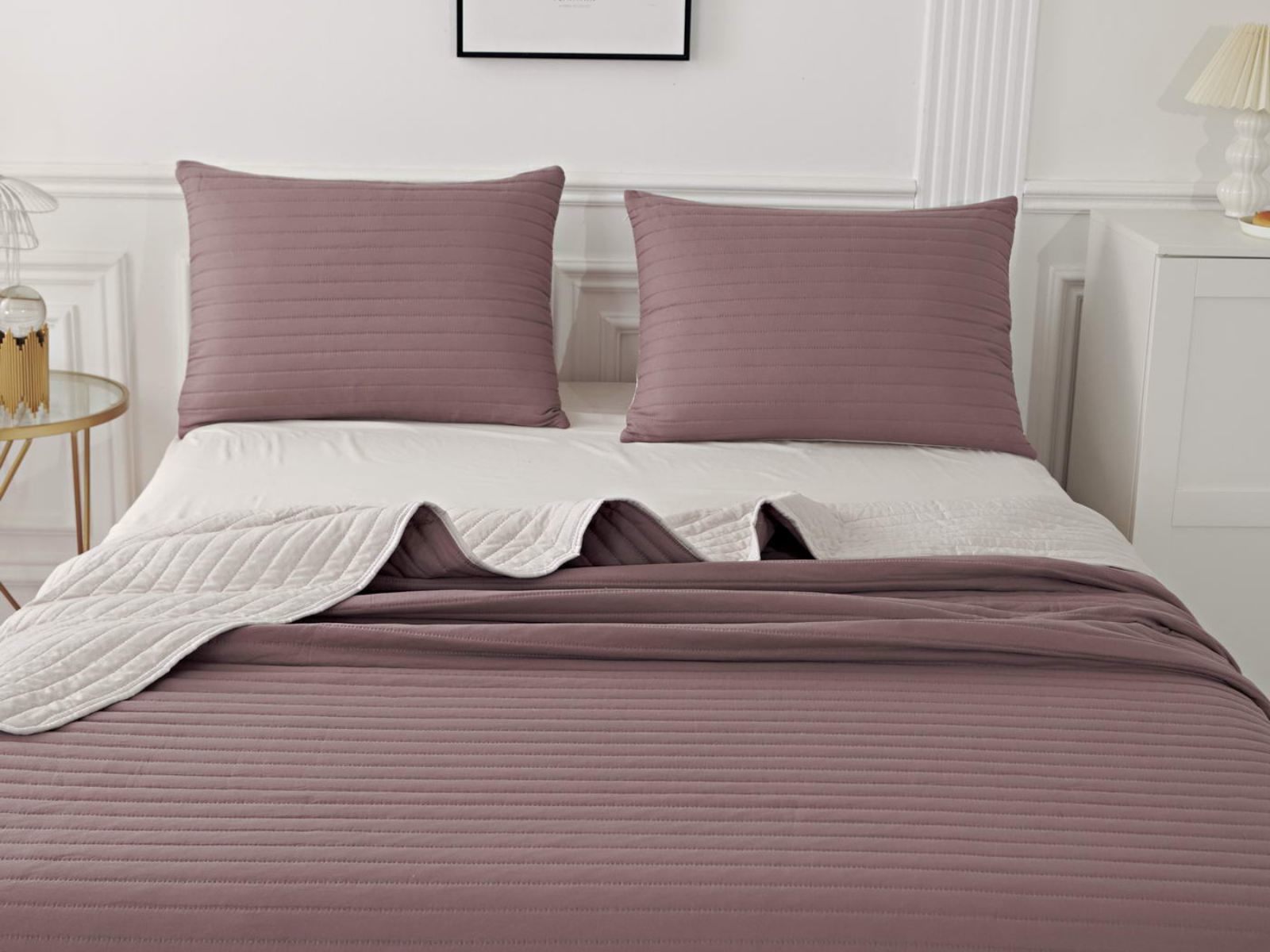 Двусторонние стеганные покрывала Самуэль выполнены из вискозы и хлопка, они легкие и прочные. В комплект входят покрывало и одна либо две наволочки (50х70 см) из аналогичного материала в зависимости от размера, вы можете использовать покрывало по назначению, либо в качестве постельного белья. В любом случае, вы будете в восторге от этого комплекта!