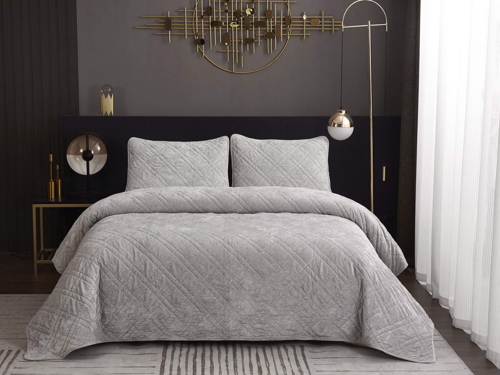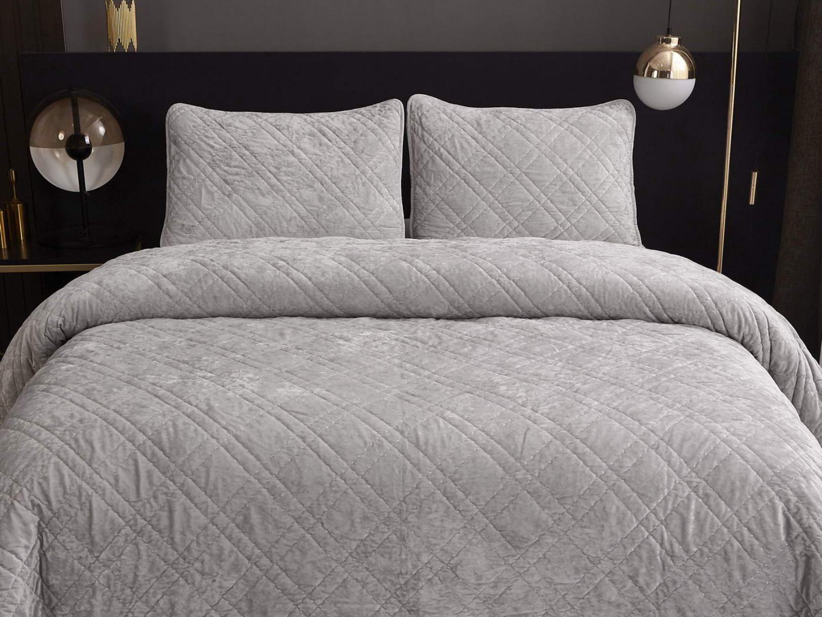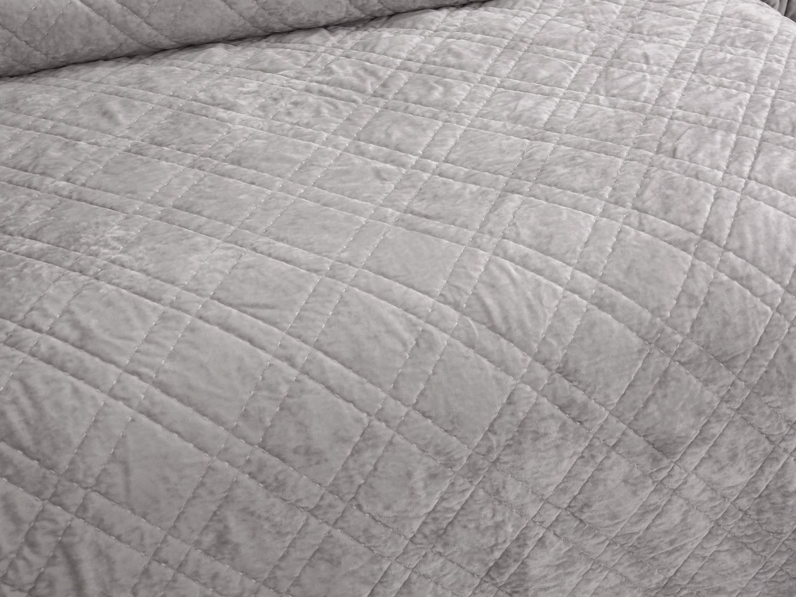 Покрывало Селена выполнено в девяти оттенках: пудра, антрацит, беж, изумруд, капучино, пепел роза, серебро, стоун, терракот. Они подойдут практически для любого интерьера, от классического, до модерна или романтического. Стеганое бархатное покрывало будет необыкновенно смотреться на вашей постели. В комплект входят покрывало и одна либо две наволочки (50х70 см) из аналогичного материала в зависимости от размера.