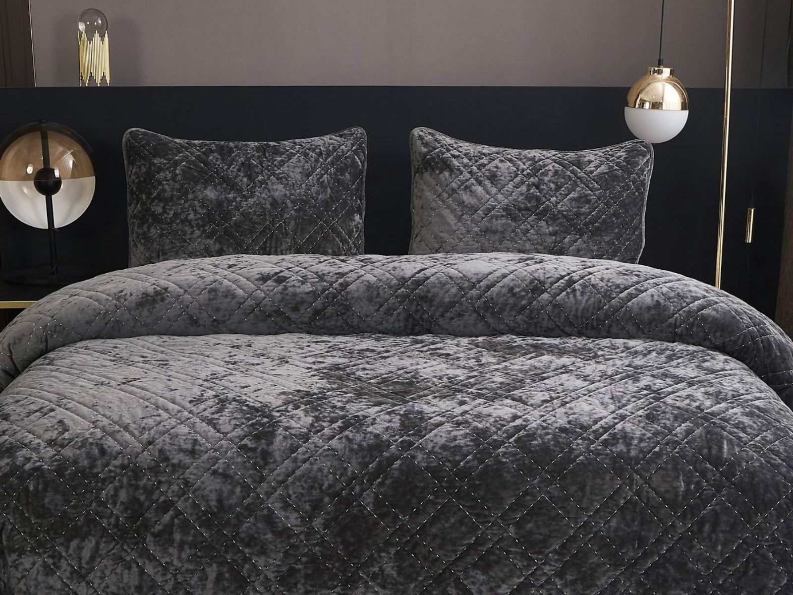Покрывало Селена выполнено в девяти оттенках: пудра, антрацит, беж, изумруд, капучино, пепел роза, серебро, стоун, терракот. Они подойдут практически для любого интерьера, от классического, до модерна или романтического. Стеганое бархатное покрывало будет необыкновенно смотреться на вашей постели. В комплект входят покрывало и одна либо две наволочки (50х70 см) из аналогичного материала в зависимости от размера.