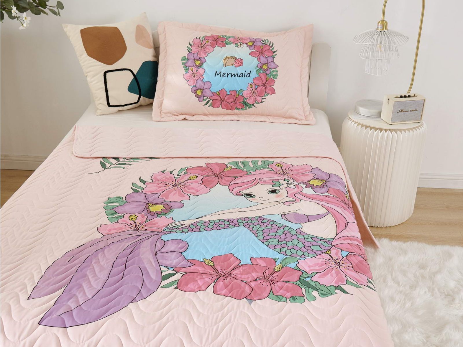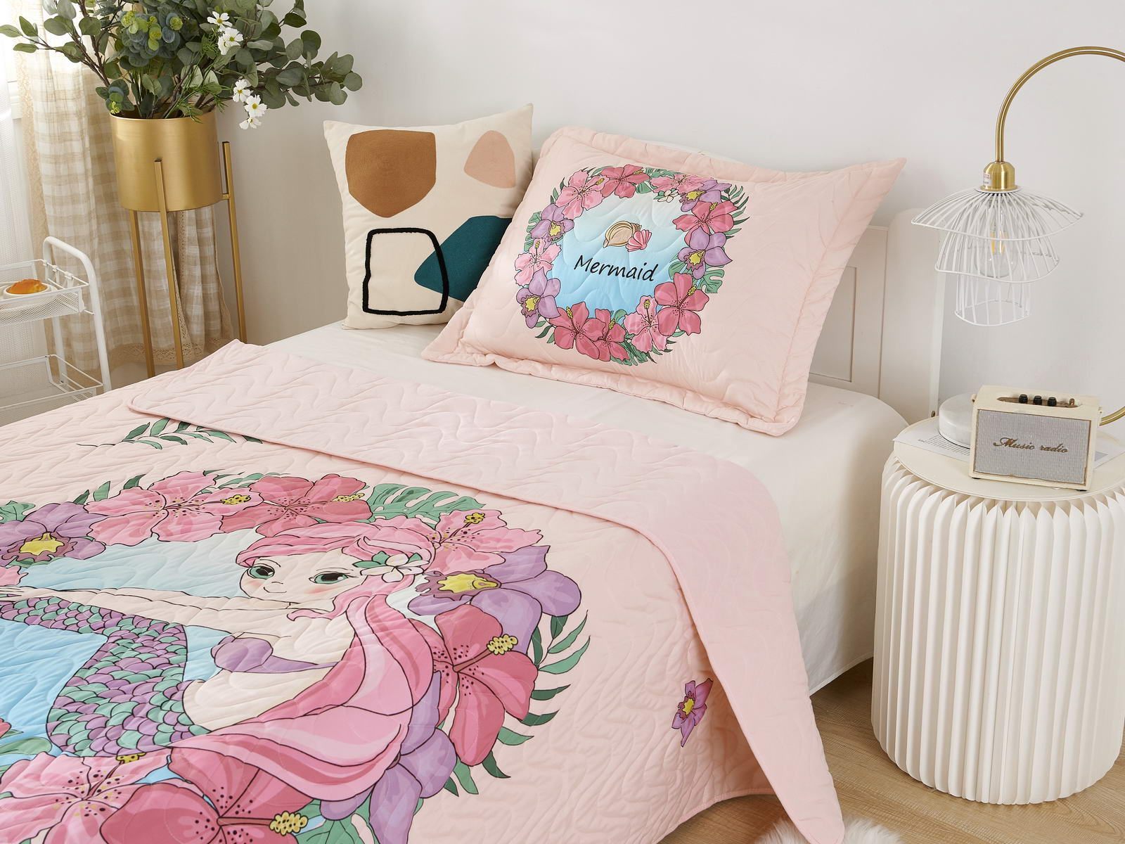 Детские покрывала - это особая забота об уюте и комфорте ребенка. Красивое, стеганое покрывало коллекции «Sunny day» придаст любой детской спальне яркую индивидуальность. Волнистые стежки делают изящные покрывала еще более выразительными и изящными. К ним в комплекте идут наволочки, у них есть интересная особенность, которая непременно понравится ребенку– небольшие ушки.