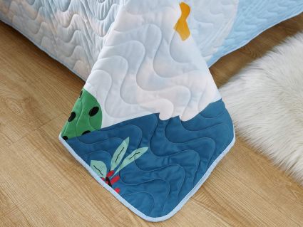 Детские покрывала - это особая забота об уюте и комфорте ребенка. Красивое, стеганое покрывало коллекции «Sunny day» придаст любой детской спальне яркую индивидуальность. Волнистые стежки делают изящные покрывала еще более выразительными и изящными. К ним в комплекте идут наволочки, у них есть интересная особенность, которая непременно понравится ребенку– небольшие ушки.