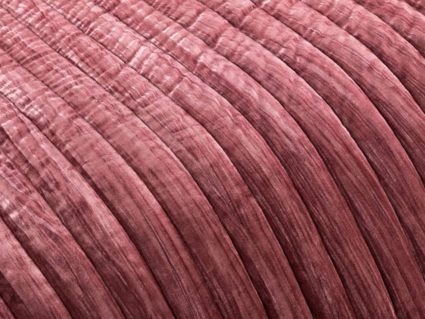 Лёгкое стеганное покрывало изготовлено из 100% вискозы. Стежка придает ткани объемную фактуру и задаёт вертикальный ритм. Декоративный кант в тон изделию добавляет изящества и стабилизирует ткань.