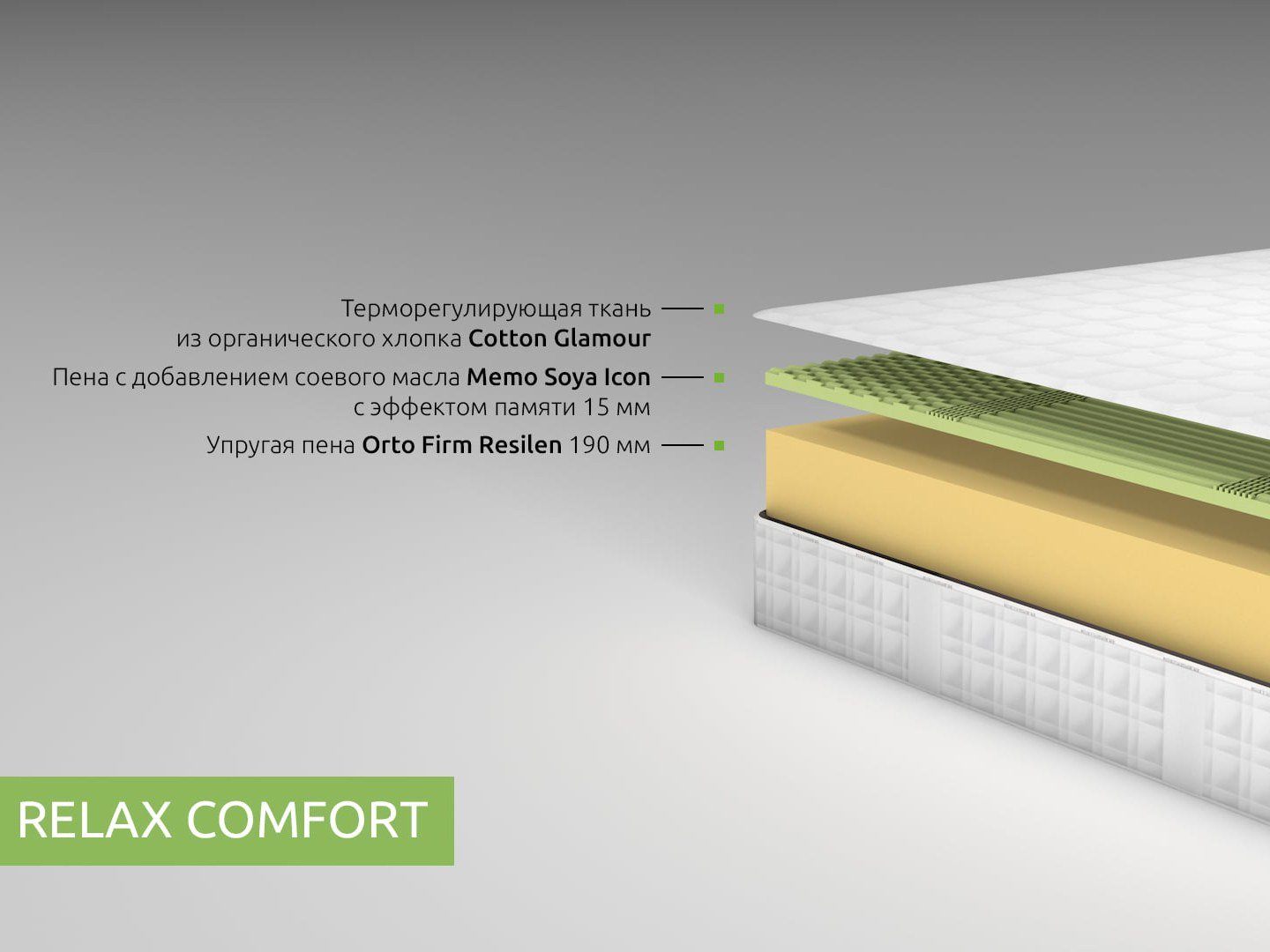 Memo Soya Ikon установлена верхним слоем и представляет собой вязкую и эластичную пену, способную запоминать любые формы. Материал как бы самомоделируется и делает своеобразный слепок тела. Человек ощущает работу пены как обволакивающее воздействие, а поскольку наполнитель не оказывает обратного давления, то скоро перестаёт чувствовать собственный вес и погружается в ощущение невероятного комфорта.