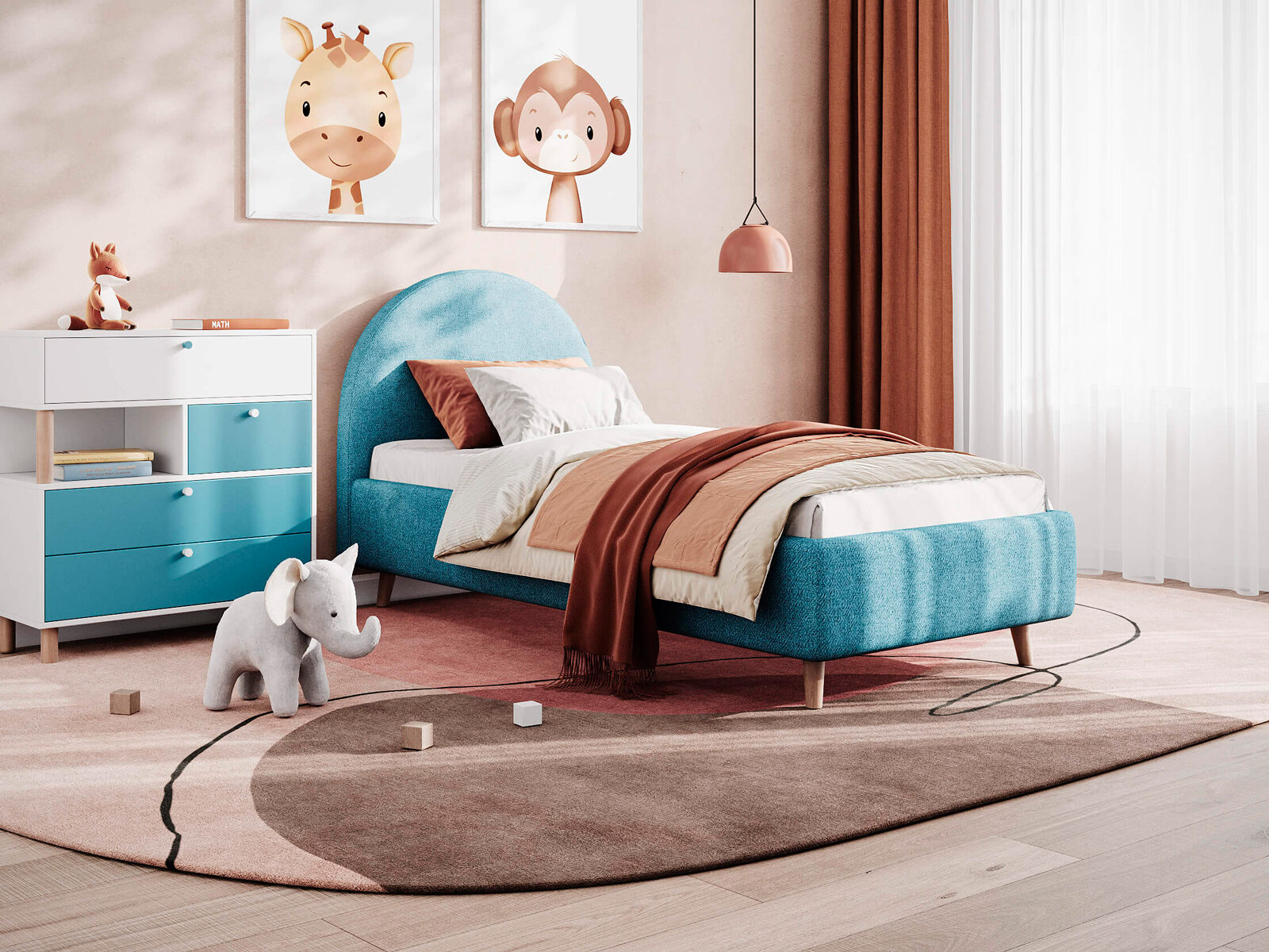 Подростковая кровать с закругленным изголовьем — это идеальное решение для создания уютного и стильного пространства в комнате. Элегантные линии изголовья не только придают изделию изысканный вид, но и добавят мягкость в интерьер, создавая уютную обстановку. По умолчанию задняя спинка кровати обивается тканью, что позволит расположить кровать не только к стене. Основание кровати на высоких деревянных ножках. Благодаря увеличенной высоте позволяют осуществлять легкую уборку под кроватью, даже с помощью робота-пылесоса. При необходимости кровать может быть укомплектована трансформируемым основанием Aquarius.