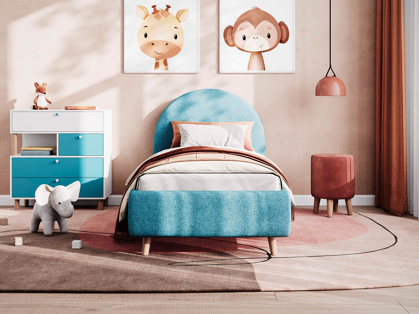 Подростковая кровать с закругленным изголовьем — это идеальное решение для создания уютного и стильного пространства в комнате. Элегантные линии изголовья не только придают изделию изысканный вид, но и добавят мягкость в интерьер, создавая уютную обстановку. По умолчанию задняя спинка кровати обивается тканью, что позволит расположить кровать не только к стене. Основание кровати на высоких деревянных ножках. Благодаря увеличенной высоте позволяют осуществлять легкую уборку под кроватью, даже с помощью робота-пылесоса. При необходимости кровать может быть укомплектована трансформируемым основанием Aquarius.