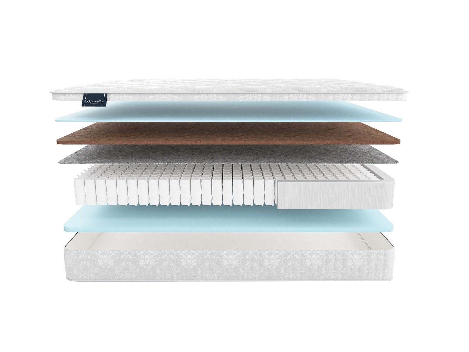 Матрас снабжен независимым пружинным блоком (520 пружин на спальное место). Он позволяет матрасу максимально хорошо подстраиваться под контуры тела и равномерно распределять нагрузку.