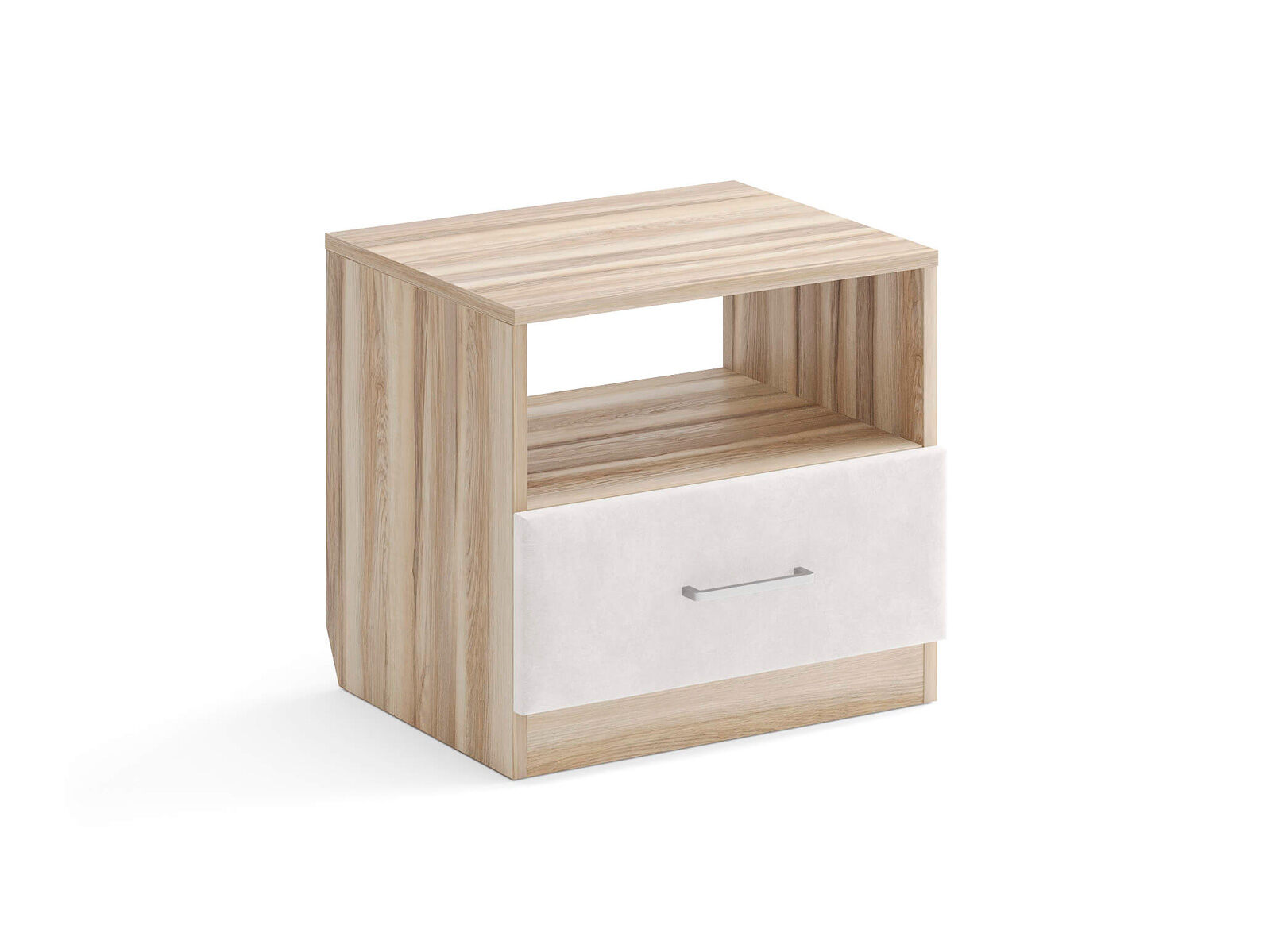 Элегантная комбинированная тумба, сочетающая в себе лаконичность ЛДСП и уют мягких фасадов ящиков, обтянутых тканью. Конструкция тумбы предусматривает открытую нишу для мелочей и вместительный выдвижной ящик с направляющими скрытого монтажа и доводчиками. Корпус из ЛДСП гарантирует долговечность и устойчивость к механическим повреждениям, а мягкие фасады в ткани и изящные металлические ручки добавят уют. Большое разнообразие текстур и цветовых решений для гармоничной интеграции в любой интерьер.