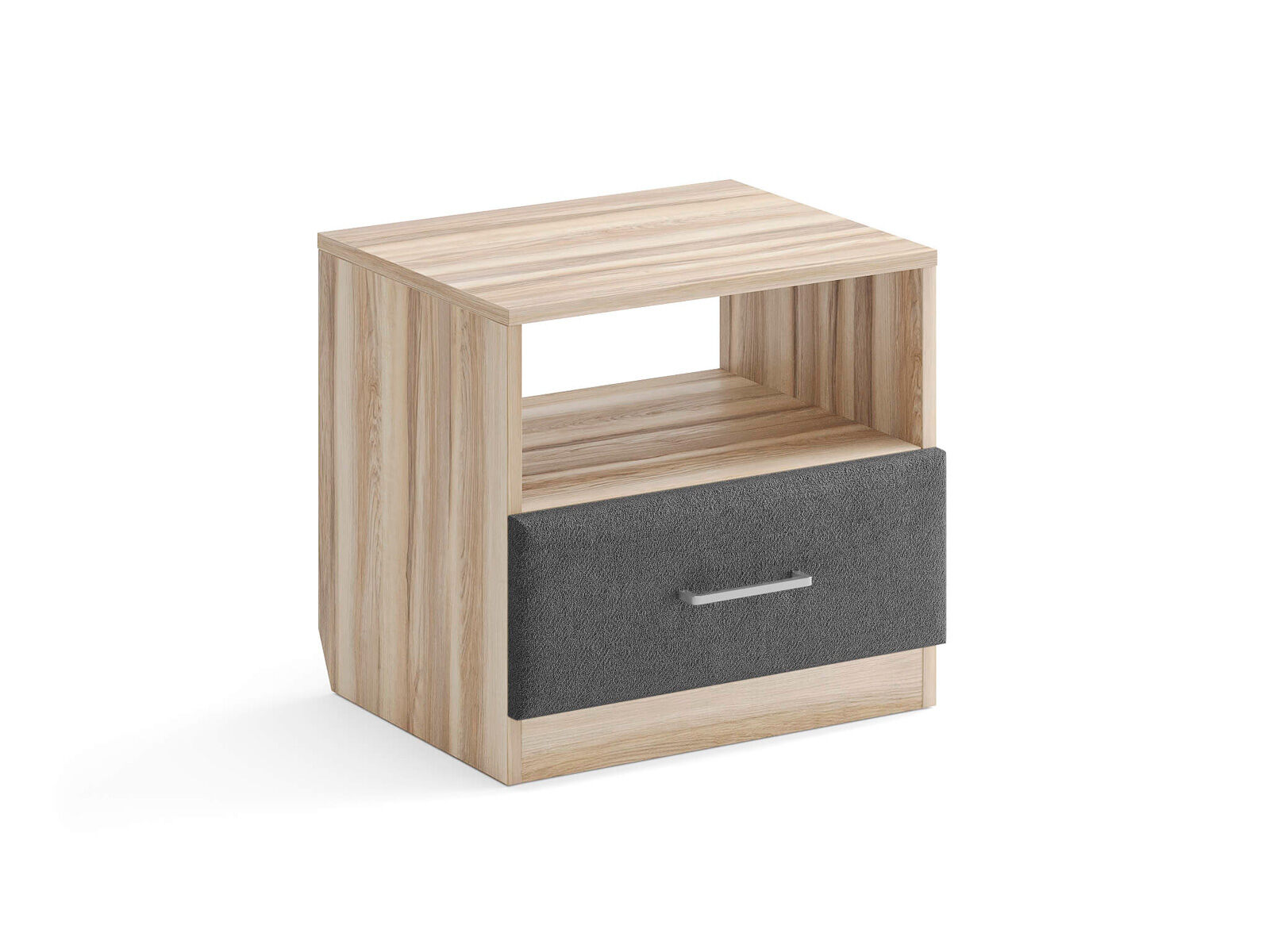 Элегантная комбинированная тумба, сочетающая в себе лаконичность ЛДСП и уют мягких фасадов ящиков, обтянутых тканью. Конструкция тумбы предусматривает открытую нишу для мелочей и вместительный выдвижной ящик с направляющими скрытого монтажа и доводчиками. Корпус из ЛДСП гарантирует долговечность и устойчивость к механическим повреждениям, а мягкие фасады в ткани и изящные металлические ручки добавят уют. Большое разнообразие текстур и цветовых решений для гармоничной интеграции в любой интерьер.
