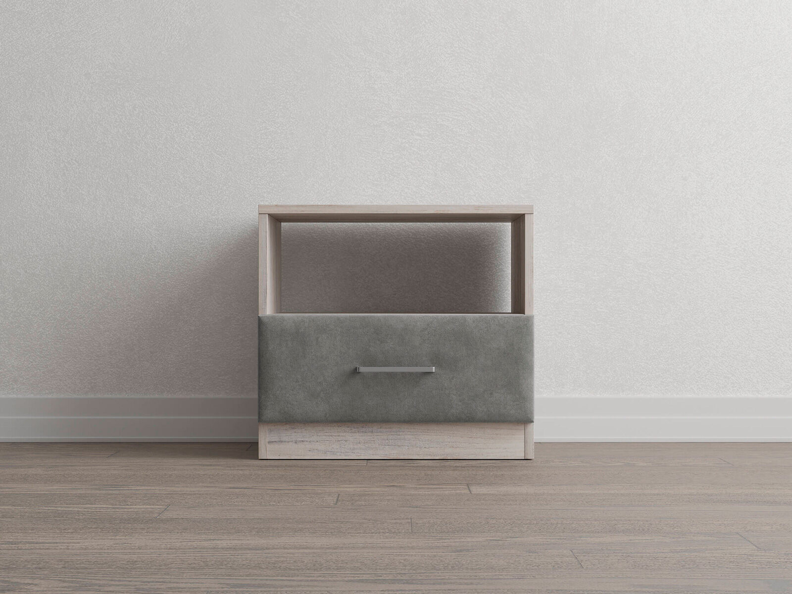 Элегантная комбинированная тумба, сочетающая в себе лаконичность ЛДСП и уют мягких фасадов ящиков, обтянутых тканью. Конструкция тумбы предусматривает открытую нишу для мелочей и вместительный выдвижной ящик с направляющими скрытого монтажа и доводчиками. Корпус из ЛДСП гарантирует долговечность и устойчивость к механическим повреждениям, а мягкие фасады в ткани и изящные металлические ручки добавят уют. Большое разнообразие текстур и цветовых решений для гармоничной интеграции в любой интерьер.