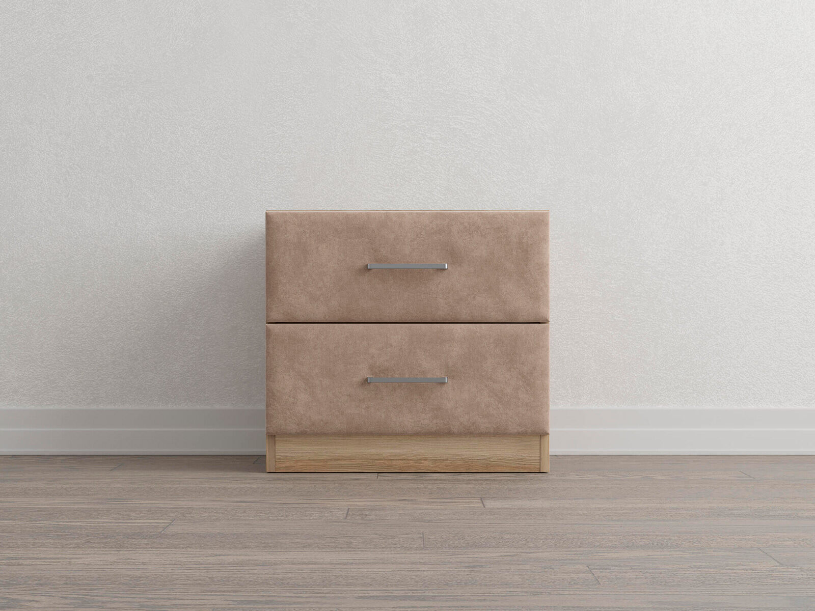 Элегантная комбинированная тумба, сочетающая в себе лаконичность ЛДСП и уют мягких фасадов ящиков, обтянутых тканью. Конструкция тумбы предусматривает два вместительных выдвижных ящика с направляющими скрытого монтажа и доводчиками. Корпус из ЛДСП гарантирует долговечность и устойчивость к механическим повреждениям, а мягкие фасады в ткани и изящные металлические ручки добавят уют. Большое разнообразие текстур и цветовых решений для гармоничной интеграции в любой интерьер.