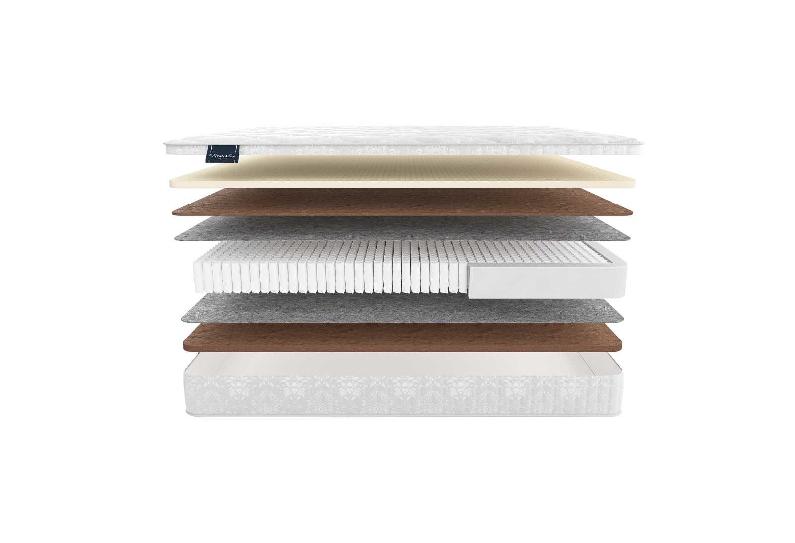 Двусторонний матрас TREVISO имеет разную жёсткость сторон и пружинное основание. В модели присутствует толстый слой натурального латекса, который даёт классическую среднюю мягкость, а также плита кокосовой койры с более выраженность жёсткостью.