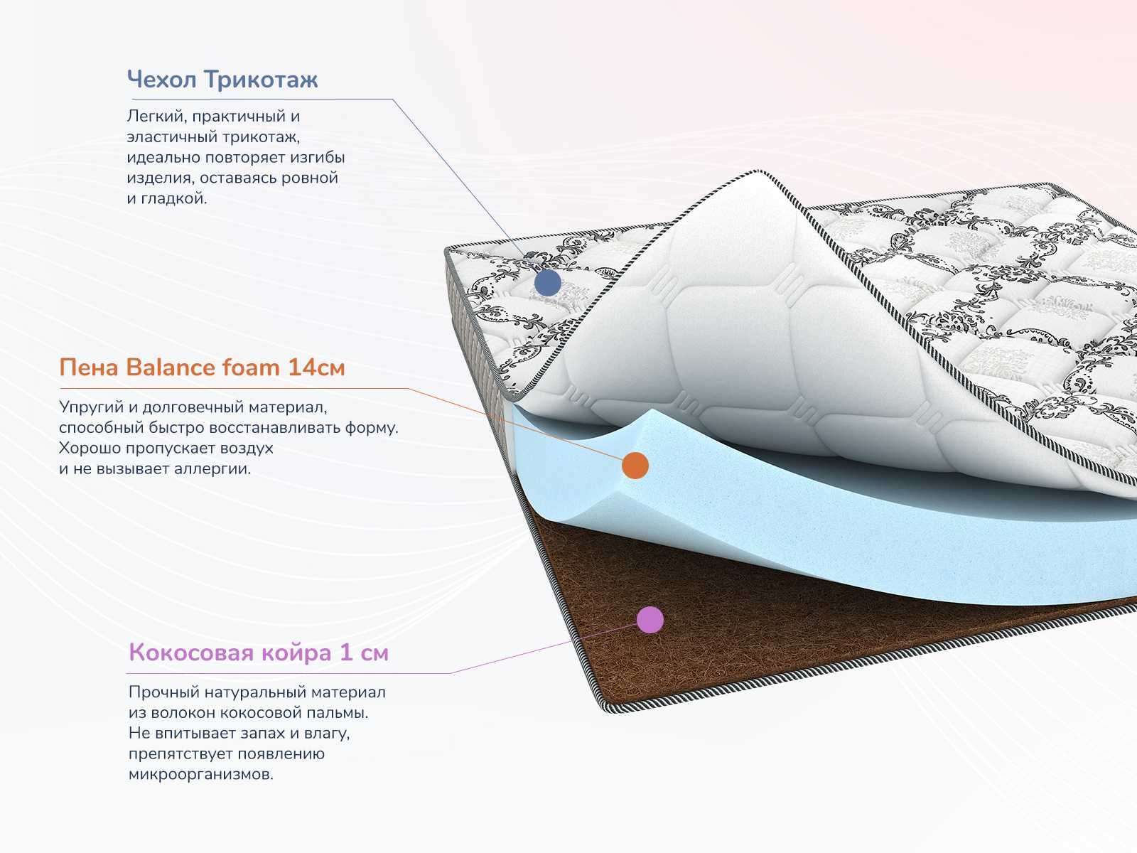 Модель сочетает в себе универсальность двух различных по мягкости поверхностей, высококачественные наполнители и современный дизайн. Матрас станет идеальным выбором для тех, кто ценит здоровый сон, свежесть и долговечность, не переплачивая лишние деньги.
