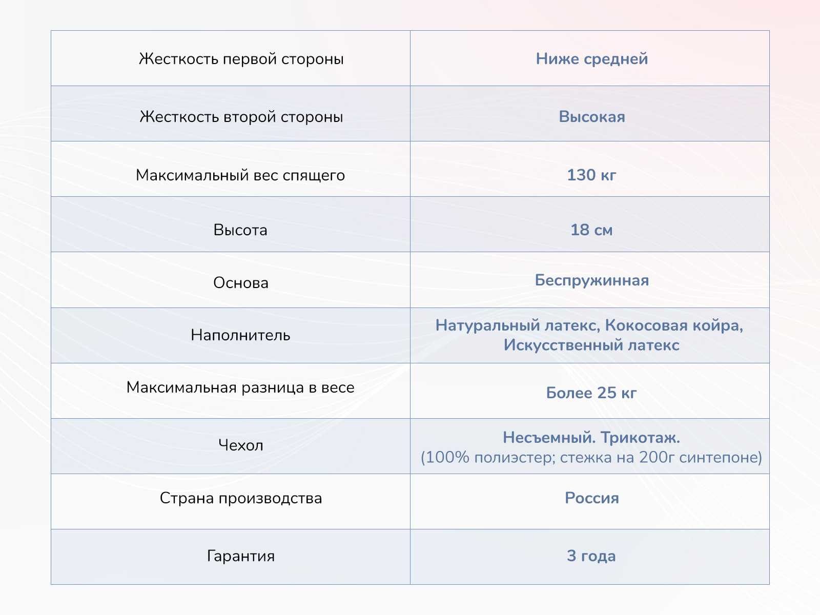 Модель сочетает в себе универсальность и практичность беспружинных изделий, которые обеспечивают оптимальную поддержку и комфорт для здорового сна.