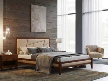 Замша — современный материал, придающий мебели эстетичный внешний вид. А главное её отличие от обычной ткани — то, что летом она отдаёт прохладу, а зимой тепло, благодаря чему вы почувствуете невероятный комфорт во время использования кровати Венсе. Красивое сочетание натурального качественно обработанного и покрашенного дерева с матовой поверхностью замши придаст интерьеру вашей спальни изысканности и совершенно нового антуража, следуя всем современным трендам. Предусмотрено три цветовые вариации ткани на выбор (коричневый, синий, бежевый)..