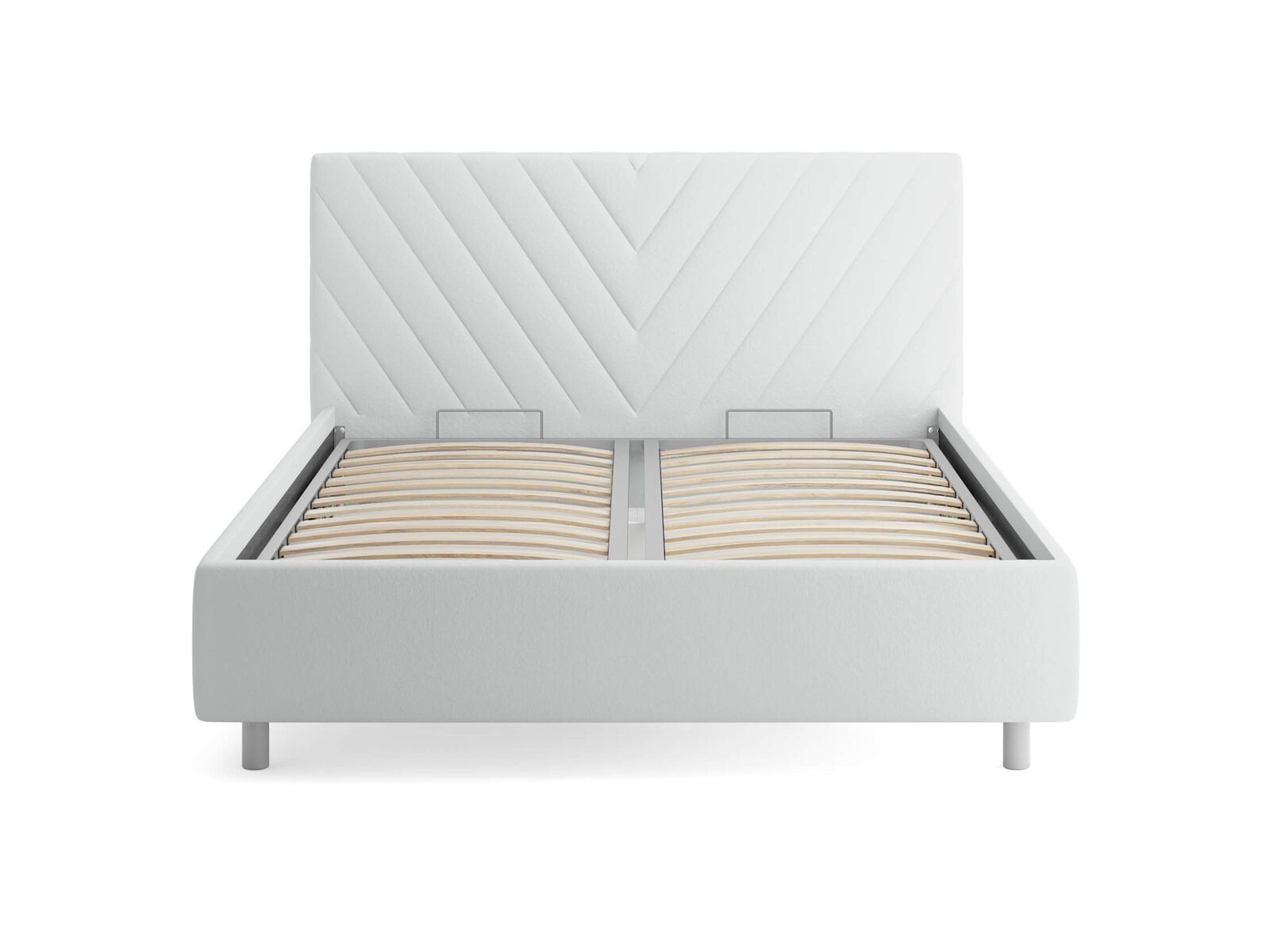 Кровать комплектуется металлическим основанием (без опор), которое имеет 13 рядов встроенных березовых ламелий на каждое спальное место, обеспечивая равномерное распределение нагрузки.